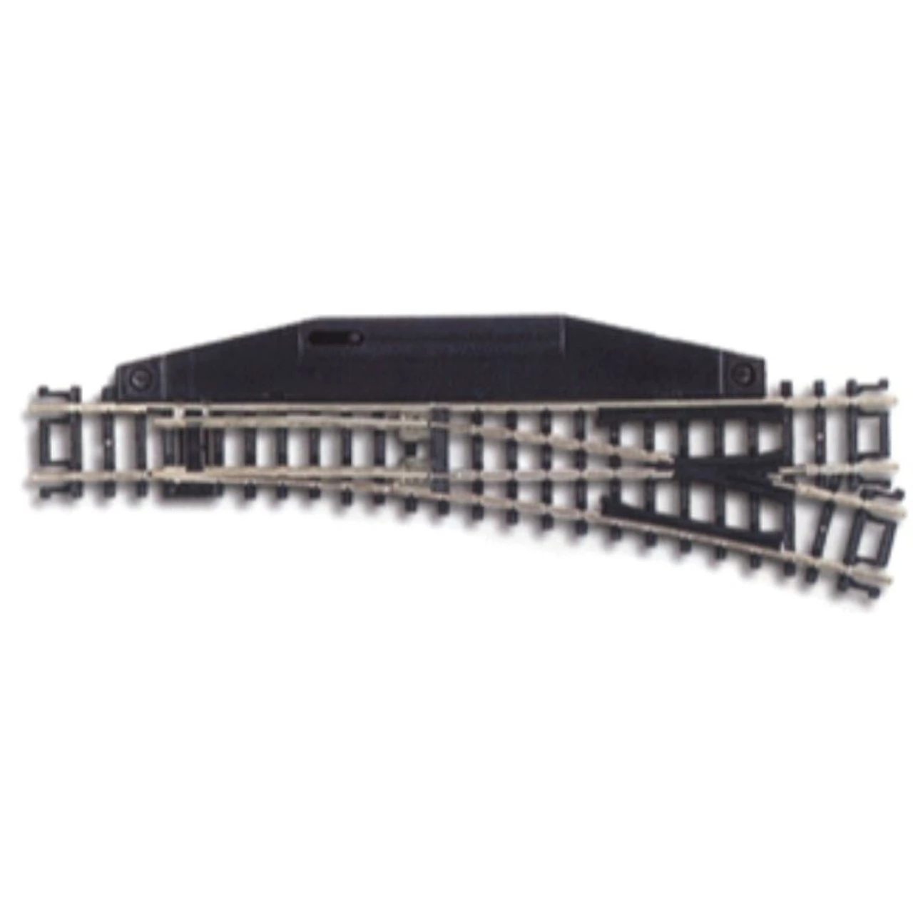 This Atlas N Scale Standard Line Code 80 No. 4 Manual Turnout features nickel-silver rail, molded black ties with wood grain detail and an attached manual switch throw. The turnout can be thrown manually using the small sliding lever on the housing. This turnout is easily converted to electric remote control using the Remote Control Switch Machine (150-2715 Left or 150-2716 Right – use the right for the Wye too) and control using the Switch Control Box (150-56) which you can mount on a control panel. This Standard Line Code 80 No. 4 Manual Turnout includes a 19″ radius curved track compensation section which can be used to make a reverse curve off the diverging route to make adding a parallel siding easy. For track planning purposes Atlas Standard Line turnouts have a different geometry and are not direct replacements for Atlas Custom Line turnouts. This Standard Line Code 80 No. 4 Manual Turnout is compatible with all Code 80 conventional track and is part of the Atlas N Scale Code 80 and Code 55 track line. Atlas N Scale Standard #4 Right Switch