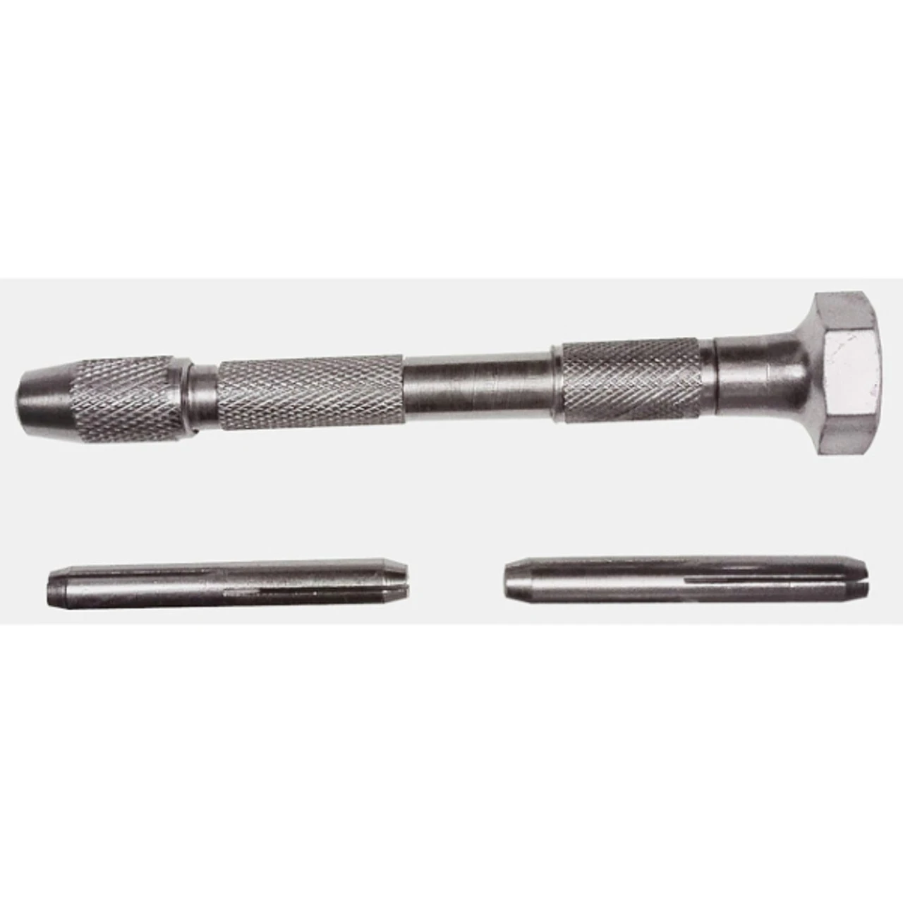 Pin Vise for mini high speed drills.Used for lightweight work on plastic, woods, metals and more. This pin vise is equipt with a hexagon swivel head to provide proper tension to work surface. The pin vise includes two double ended collects to hold a range of high speed drills, from sizes #30 to #80.