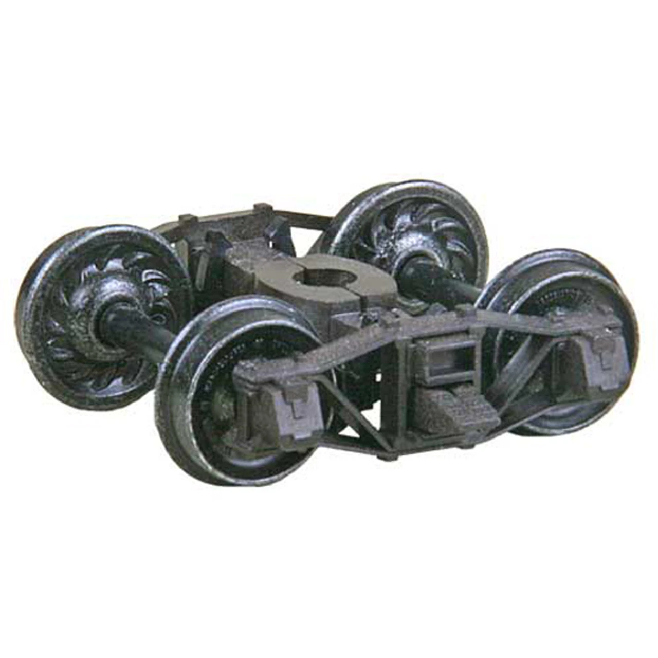 Arch Bar Self Centering Caboose Trucks (Leaf Spring) Metal Fully Sprung Equalized Trucks 1pr. Mounts with a #2 or 2-56 screw. Mounting Screws not Included. Truck Features • Self Centering Action – Trucks self align themselves parallel with the car for easier placement on track. • Code 88 (.088) 33″ ribbed back wheels • Accurate markings • Incredible detail True to prototype • Non-magnetic Metal wheels • Highly Flexible sprung trucks • Metal SideFrames & Fully Sprung Bolster • Smooth tracking Free rolling Contoured Insulated Axles • RP-25 Free rolling wheels • Patent number 7,434,518 B2