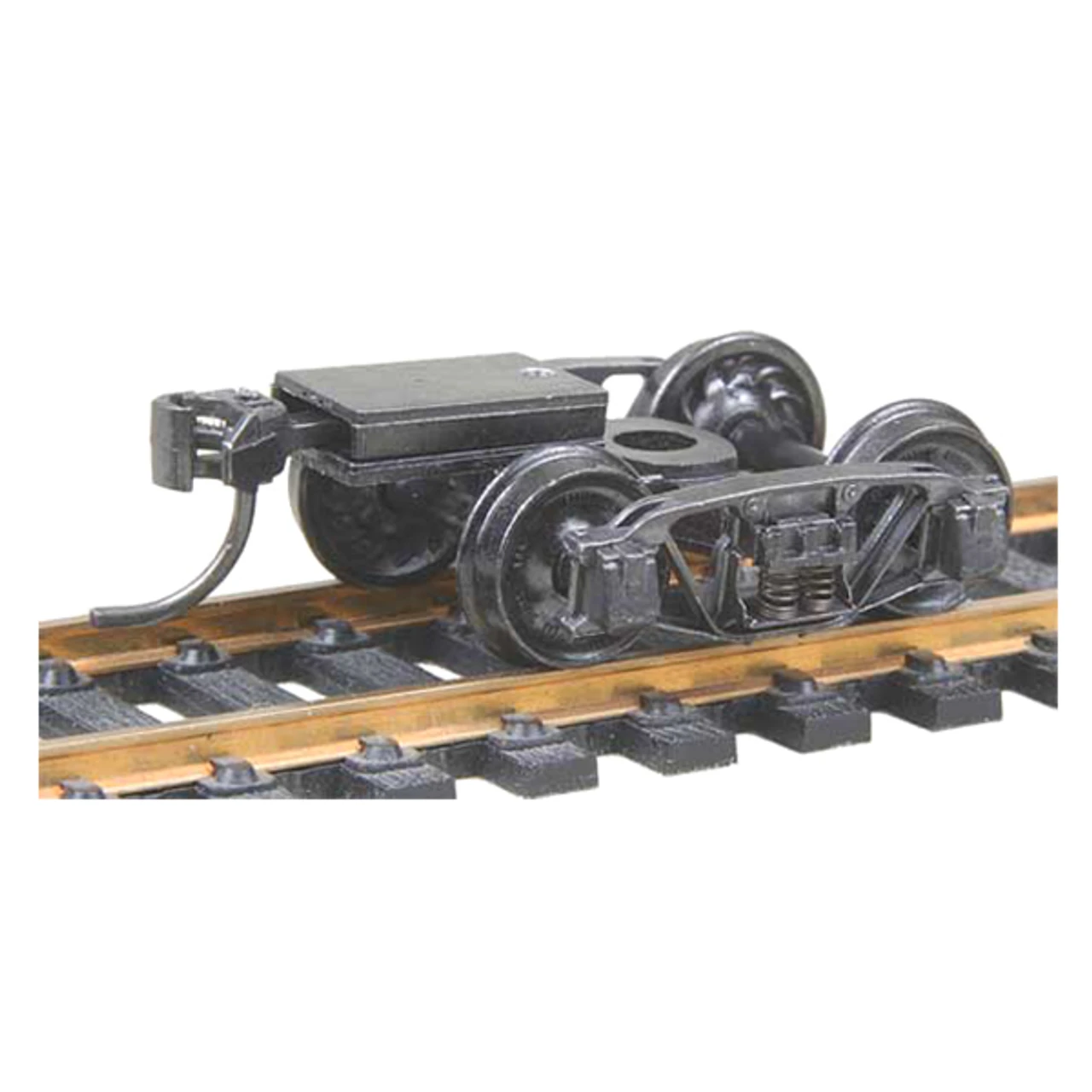 Andrews (1898) Trucks with Ready-To-Mount Metal Whisker® couplers. Metal Fully Sprung Equalized Trucks 1pr. Mounts with a #2 or 2-56 screw. Mounting Screws not Included. The Andrews truck is also a turn of the century design that was long lived. It represents one of the first steps in the development of the modern freight truck with its cast frame. The journal boxes are bolted to the main frame. This truck was used through the end of the 1950’s although by that time was only used in lighter applications such as refrigerator cars. Andrews trucks are probably still used were logging railroads remain in operation. Truck Features • Ready-To-Mount Metal Whisker® Couplers • Code 110 (.110) 33″ smooth back wheels • Accurate markings • Incredible detail True to prototype • Non-magnetic Metal wheels • Highly Flexible sprung trucks • Metal SideFrames & Fully Sprung Bolster • Smooth tracking Free rolling Contoured Insulated Axles • RP-25 Free rolling wheels