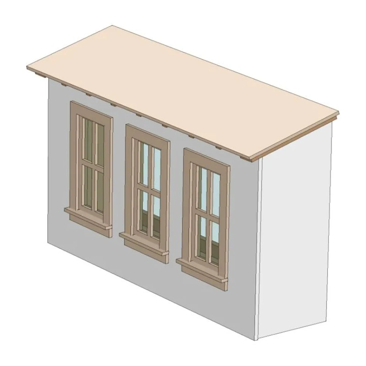 This Dormer Extension measures approximately .35″ x 1.25″ x .79″ tall. This is a laser cut kit designed with DPM buildings in mind. Showcase Miniatures N Scale Dormer Extenstion