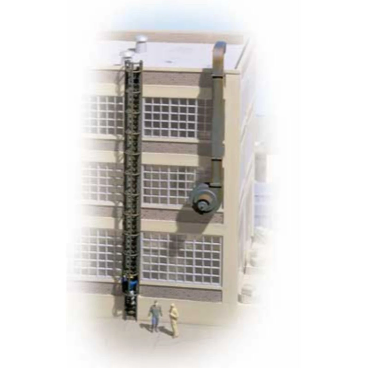 Add detail to your factory buildings with Walthers Cornerstone HO Scale Caged Ladders and Vents. On real structures, caged safety ladders are required for any ladder access over 10′ 3m tall and can be found on virtually any American industrial building. A great way to modernize older buildings or detail contemporary structures, the set includes five complete ladder and cage assemblies. Plus, you get five wall-mounted vents that can also be fitted on the outside of almost any building. Easy way to update old or modern industries Five caged ladders Five wall-mounted vents with ductwork and blowers Molded in appropriate base color Walthers HO Scale Caged Ladders & Vents